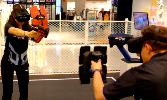 enquanto circula e se protege nos objetos e estruturas do ambiente. São três diferentes cenários para descobrir e se aventurar. Já é considerado um e-sport e a ARENA VR oferece muito movimento e adrenalina.